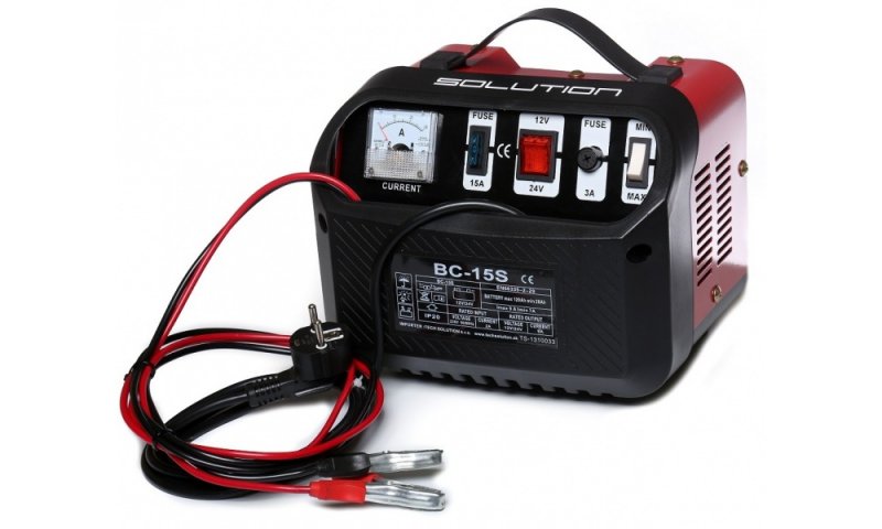 Transformátorová 12V a 24V nabíjačka SOLUTION BC-15S pre nabíjanie olovených akumulátorov s kapacitou od 35Ah do 120Ah v dvoch stupňoch výkonu “MIN” a “MAX”.